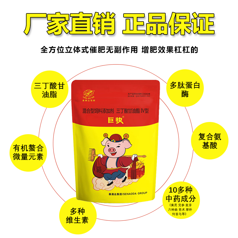 原料煙成:三丁酸甘油脂、丁酸梭苗、包被鹽酸半能胺肽、生物素、溶苗哉、木聚糖磚、多肽蛋白磷、胰脂酶、卵磷脂、甘氮酸亞鐵警合物、有機(jī)整合微量元素、復(fù)合氨基酸、綠原酸、維生素(A、D3、E、K、B1、B2、B6、B12)、基因工程改良益生菌、釀酒酵母菌、黃芪、黨參、麥芽、六神曲、蒼術(shù)、厚、何首烏等。用法用量:混合拌料添加量:1kg本品拌料2000斤。包裝規(guī)格:1000g/袋x20袋/福