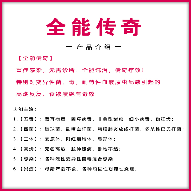 血癥、鏈球菌病、附紅細胞體、副嗜血桿菌等病癥有顯著而獨特的療效。