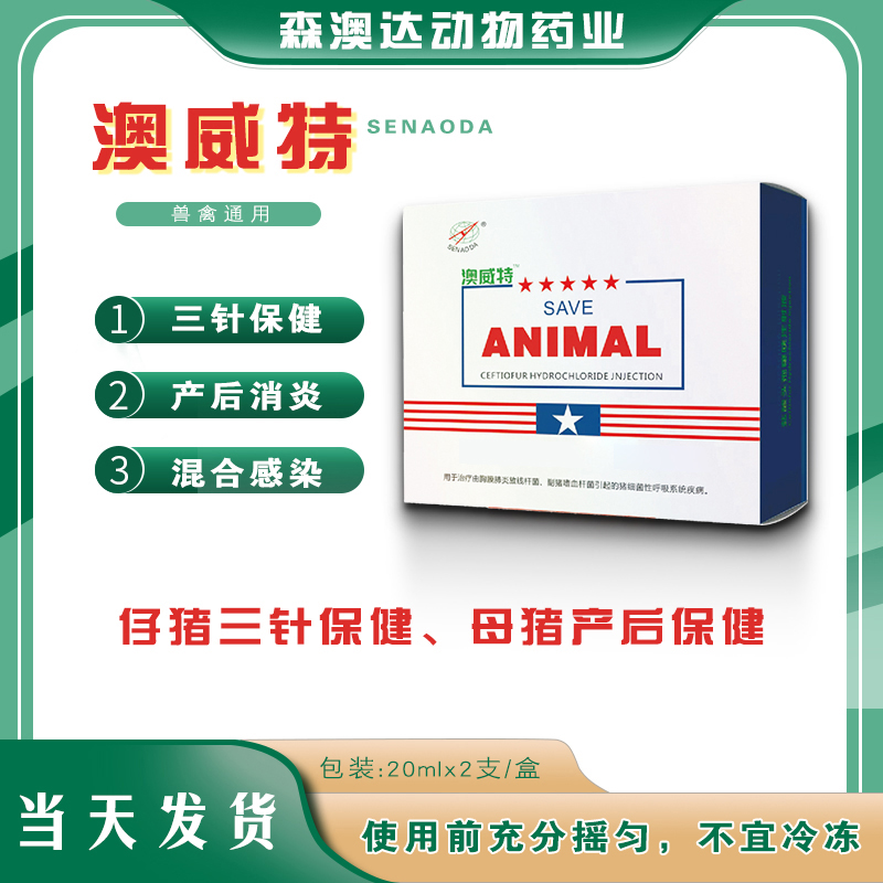3、母豬產(chǎn)后保健:在母豬產(chǎn)后8小時內(nèi)按每1kg體重0.05-0.1ml肌內(nèi)注射1次(全